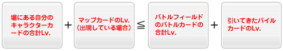 引かれたカードがバイルカードで、バイルのLv.≦自分の場のLv.の場合、バトルフィールドへ置かれます。 |